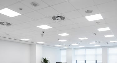 Grid ceilings, commonly referred to as T-bar or suspended ceilings, are extensively utilized in commercial and office environments. They are made up of metal grids paired with drop-in tiles, facilitating convenient access to wiring, ductwork, and lighting fixtures. We offer top-notch acoustic tiles designed to minimize noise while providing a sleek, modular ceiling aesthetic - perfect for large halls, IT offices, and showrooms.